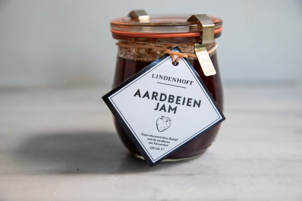 Aardbeien jam gemaakt van aardbeien uit eigen tuin. Door het hoge vruchtenpercentage is de jam vol van smaak en minder zoet dan andere soorten jam. Doordat er een natuurlijke binding wordt gebruikt is de jam 100% natuurlijk. Voor de binding wordt pectine (geleermiddel) uit appels gewonnen om zo de smaak van de vruchten niet te beïnvloeden. Op deze manier kunt u heerlijk genieten van een volle aardbeiensmaak.