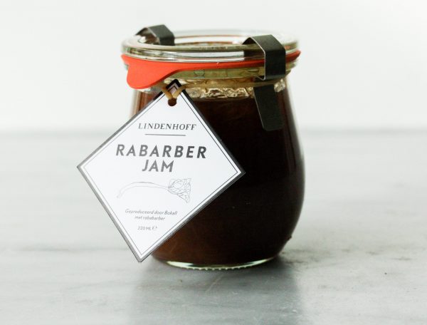 Rabarberjam gemaakt van rabarber uit eigen tuin. Door het hoge vruchtenpercentage is de jam vol van smaak en minder zoet dan andere soorten jam. Doordat er een natuurlijke binding wordt gebruikt is de jam 100% natuurlijk. Voor de binding wordt pectine (geleermiddel) uit appels gewonnen om zo de smaak van de vruchten niet te beïnvloeden. Op deze manier kunt u heerlijk genieten van een volle rabarbersmaak.